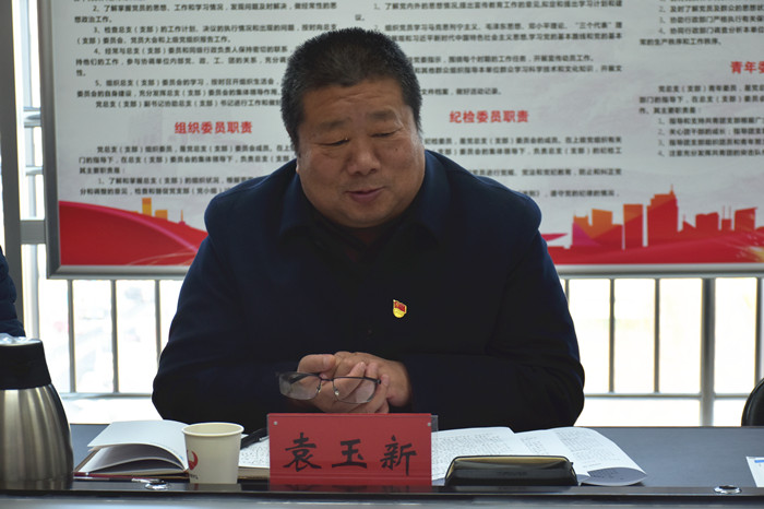 省委軍民融合辦副主任、機關黨委書記袁玉新同志作指導講話,他肯定了永聯公司黨建工作一年來取得的成績,尤其是各支部書記對抓黨建工作認識到位、措施到位、方法創新,把黨建工作和部門業務工作很好結合,黨員的先鋒模范作用和支部的戰斗堡壘作用在具體工作中凸顯明顯,助推了河南民爆行業安全穩定高質量發展。提出六點要求:一是加強支部書記抓黨建"第一責任人"意識,自覺加強黨的建設,使企業發展與黨的建設同向同步。二是嚴格按照黨章黨規開展工作,學習好、落實好《中國共產黨支部工作條例(試行)》,加強陣地建設,提高基層黨建標準化水平。三是在"圍繞中心工作,推動工作落實"上,充分發揮黨員的先鋒模范作用和黨支部的戰斗堡壘作用。四是結合全面從嚴治黨的新形勢新任務,創新方式方法,進一步加強黨員隊伍教育管理工作。五是加強黨風廉政建設,嚴守政治紀律和政治規矩,增強"四個意識",堅定"四個自信",做到"兩個維護"。六是抓好年底各項工作落實,開展好談心談話、民主評議、民主生活會等活動,總結提高,統籌謀劃,為新一年工作開好頭、起好步。