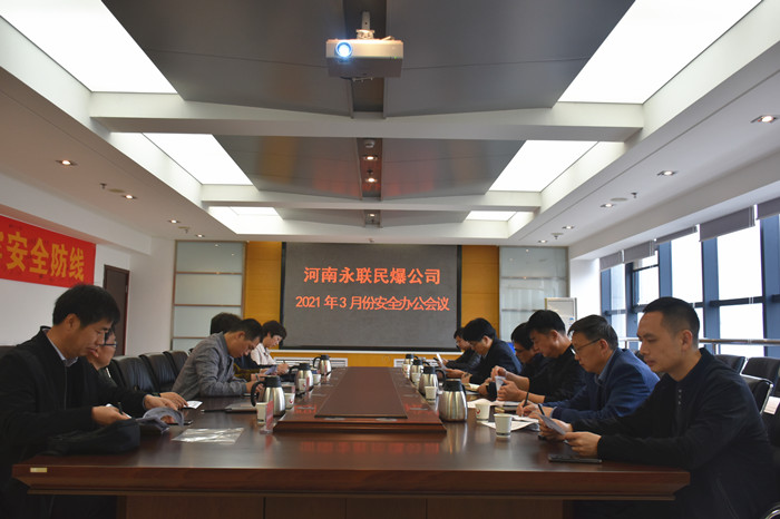2021年3月31日,河南省永聯民爆器材股份有限公司召開了3月份安全辦公會議,公司領導班子、安委會成員、安委會辦公室成員以及寶豐縣、新縣、義馬市、桐柏、南召縣、泌陽縣等6家分公司負責人參加了會議。會議由公司副總經理靳義國主持,公司董事長、總經理劉嵩參加會議并講話。