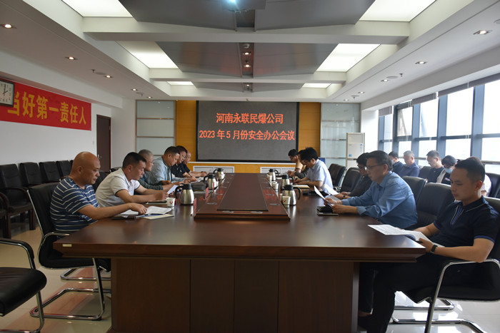 2023年5月23日,河南省永聯民爆器材股份有限公司召開了5月份安全辦公會議,公司領導班子、安委會成員、安委會辦公室成員以及嵩縣、靈寶市、舞鋼市、淇縣、鄧州市、方城縣等6家分公司負責人參加了會議。會議由公司副總經理張鐵飛主持,公司董事長、總經理劉嵩參加會議并講話。