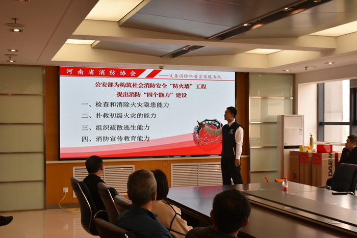 首先進(jìn)行的是消防安全知識(shí)講座。本次講座,公司特邀河南省消防協(xié)會(huì)孫鴻運(yùn)宣講員到公司進(jìn)行消防安全知識(shí)培訓(xùn)。講座中,孫宣講員從如何檢查消除安全隱患、正確報(bào)告火警、撲救初期火災(zāi)和火場(chǎng)逃生等方面進(jìn)行了生動(dòng)細(xì)致的講解。此外,結(jié)合近年來真實(shí)發(fā)生的火災(zāi)案例,通過一張張觸目驚心的圖片、一段段引人深思的視頻,讓大家深刻感受到火災(zāi)的無情和消防知識(shí)的重要性。孫宣講員還對(duì)滅火器、滅火毯、防毒面具等常用消防器材的使用方法一一做了展示和指導(dǎo)。